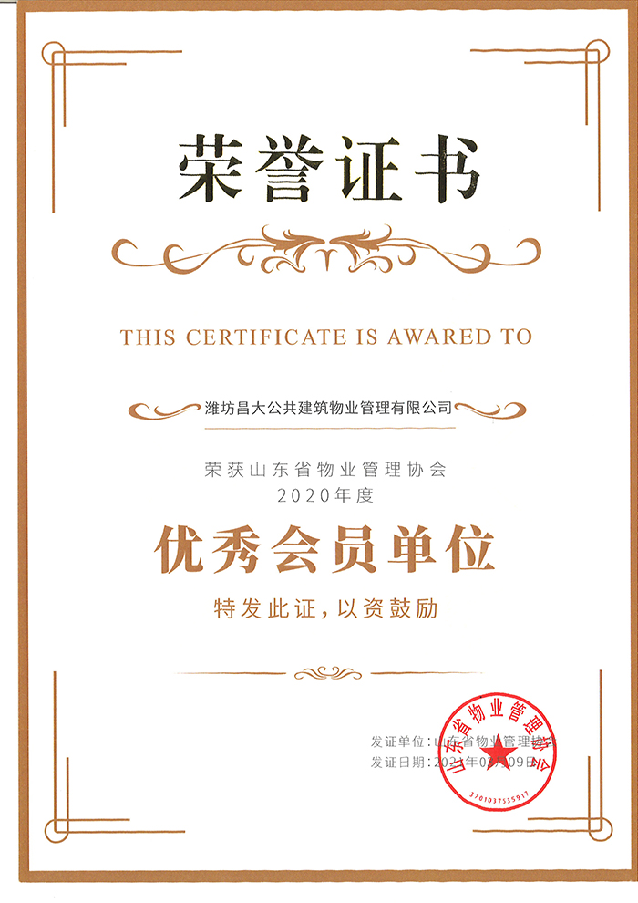 2023年度山東省物業(yè)管理協(xié)會(huì)優(yōu)秀會(huì)員單位證書