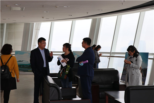 隨后,郇會長帶領(lǐng)考察團登上市文化藝術(shù)中心觀光塔,一覽濰坊市貌。