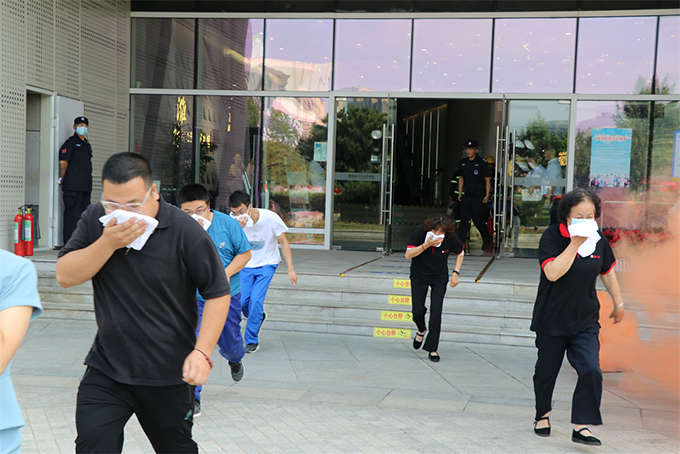 “濰坊市文化藝術(shù)中心消防演習(xí)現(xiàn)在開始!”,通訊聯(lián)絡(luò)組、后勤保障組、人員搶救組、滅火行動(dòng)組、疏散引導(dǎo)組立即就位,煙霧升起、消防警報(bào)聲響起,演練人員用濕毛巾捂住口鼻、彎下身體,按照疏散路線快速、有序地疏散到了空曠區(qū)域,隨后,滅火行動(dòng)組對(duì)火源進(jìn)行滅火,被困人員模擬救出,整個(gè)演習(xí)用時(shí)15分鐘,演練活動(dòng)緊張有序。